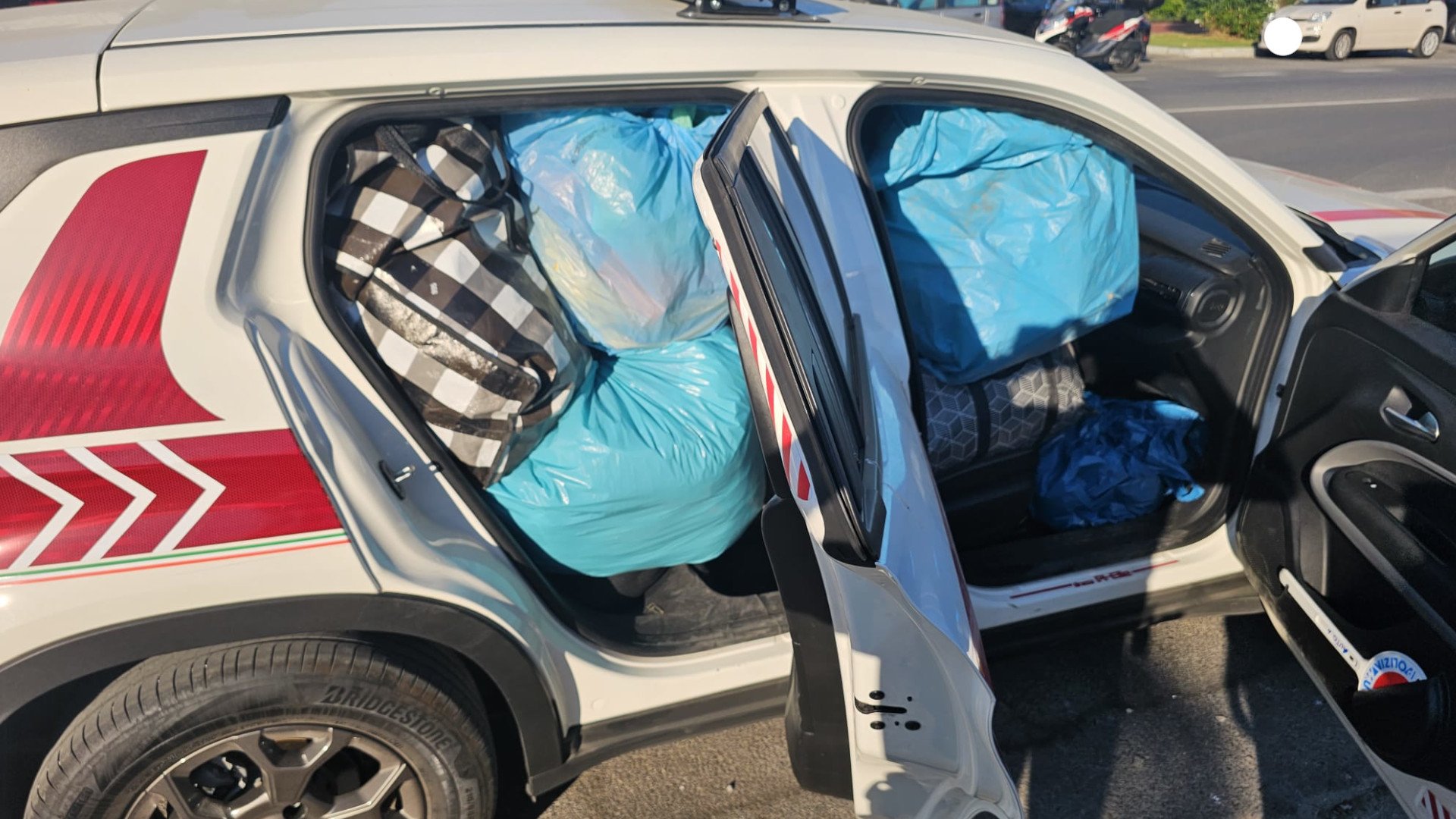 Nella zona del centro, intorno al mercato, gli agenti della polizia locale hanno posto sotto sequestro amministrativo (in quanto senza marchi) anche di numerosi ombrelli e borse.