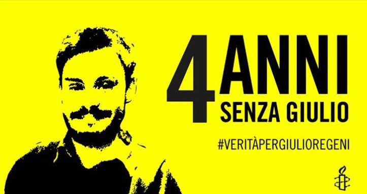 Alle 19.41 di quel giorno del 2016 il nome di Giulio Regeni si unì a quelli dei tanti egiziani e delle tante egiziane vittime di sparizione forzata e poi di tortura e di omicidio in Egitto. Sono trascorsi quattro anni da quel 25 gennaio e le autorità egiziane si ostinano ancora a non rendere noti i nomi di chi ha ordinato, di chi ha eseguito, di chi ha coperto e ancora copre il sequestro, la tortura e l’omicidio di Giulio. Sin dall’inizio esse hanno scelto la tattica del depistaggio, della perdita di tempo, delle promesse non mantenute. Loro interlocutori sono stati quattro, ormai, diversi governi italiani che non hanno saputo o voluto chiedere con la necessaria costanza e fermezza la verità per Giulio.
