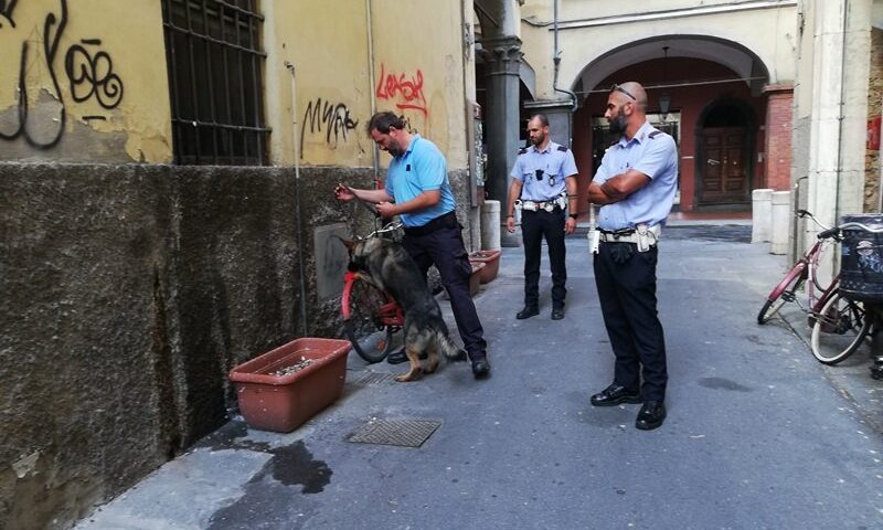Infine venerdì 24 luglio la Polizia Municipale ha effettuato uno specifico servizio di contrasto allo spaccio di droga per le strade del centro città, tra la zona di Borgo e piazza delle Vettovaglie, con l’ausilio di un cane antidroga. Particolare attenzione in questo caso è stata riposta nei confronti dei contatori di acqua, luce e gas che si trovano su strada: vani che spesso vengono utilizzati da chi spaccia per nascondere la droga.