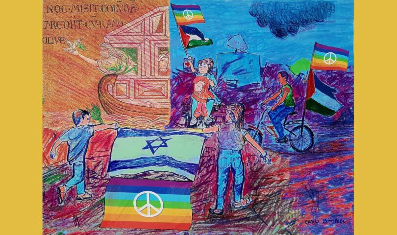 Intanto da Sant’Anna si leverà un altro appello di pace, un cessate il fuoco (dopo quello rivolto al conflitto in Ucraina) per la situazione critica scoppiata nella Striscia di Gaza, in Medio Oriente. È questo il significato dell’opera di Carli, “Pace a Gerusalemme”, realizzata con una tecnica mista di grafica, digitale, pastelli e cera su tela: vi sono rappresentati quattro bambini (due israeliani e due palestinesi) che sventolano rispettivamente la bandiera di Israele e la bandiera della Palestina. Il quadro è destinato, quando le condizioni politiche saranno ristabilite, a Monsignor Rafic Nahara, vicario patriarcale per Israele e vescovo ausiliare del patriarcato latino a Gerusalemme. Al momento l’opera rimarrà al Museo della Resistenza di Sant’Anna.