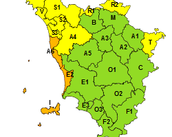 TOSCANA – Maltempo, lunedì 8 codice arancione